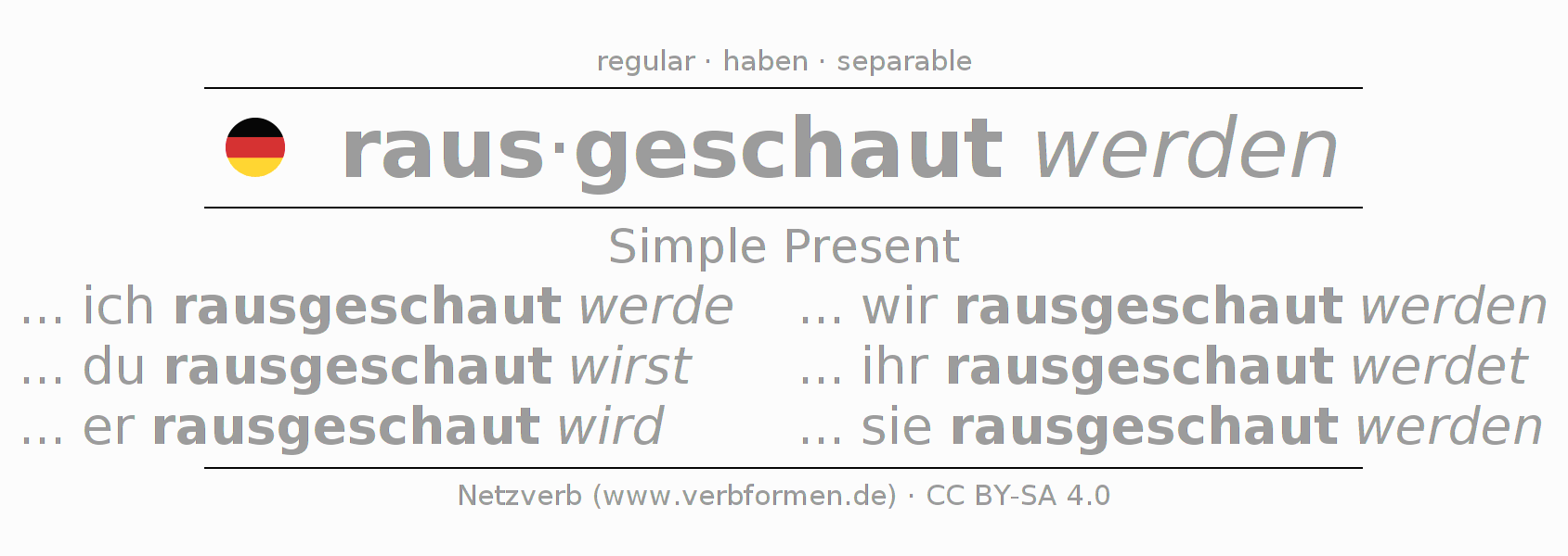 The verb rausschauen fully conjugated in all persons and numbers in the Present Indicative
