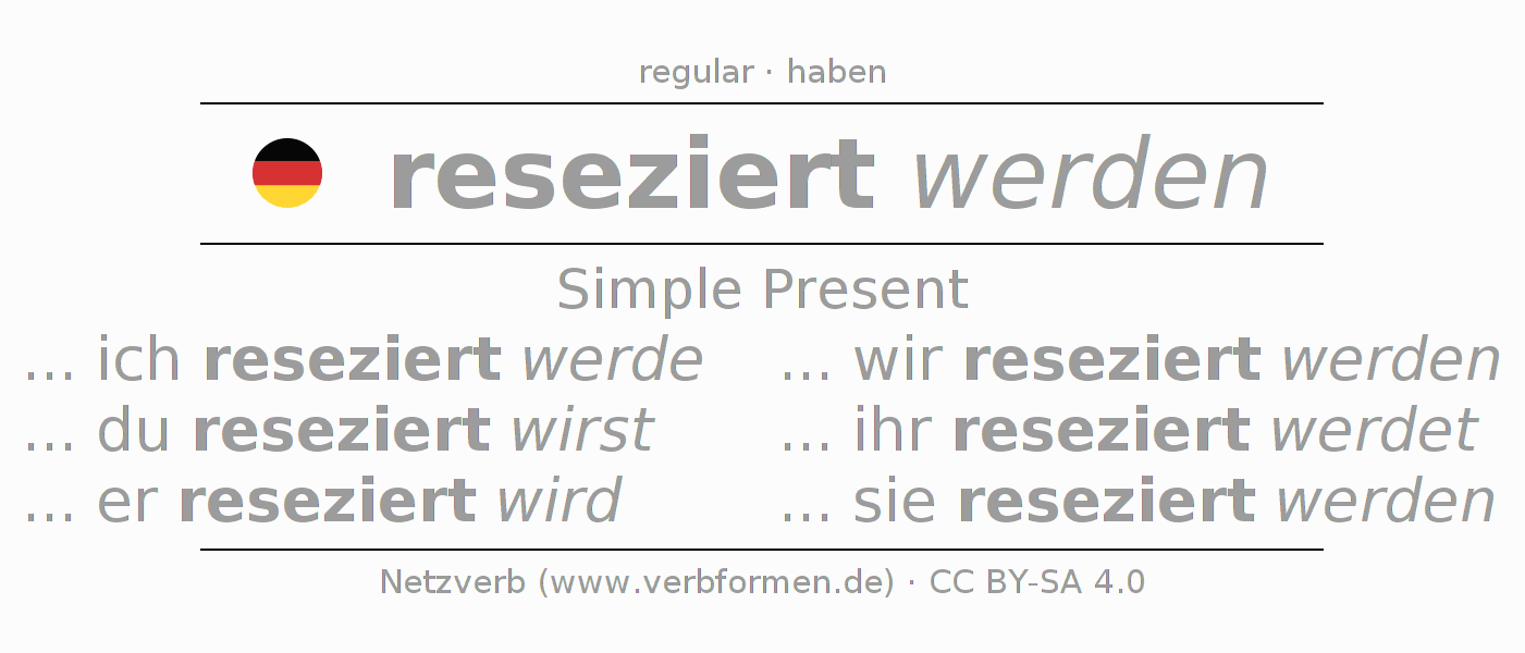 The verb resezieren fully conjugated in all persons and numbers in the Present Indicative