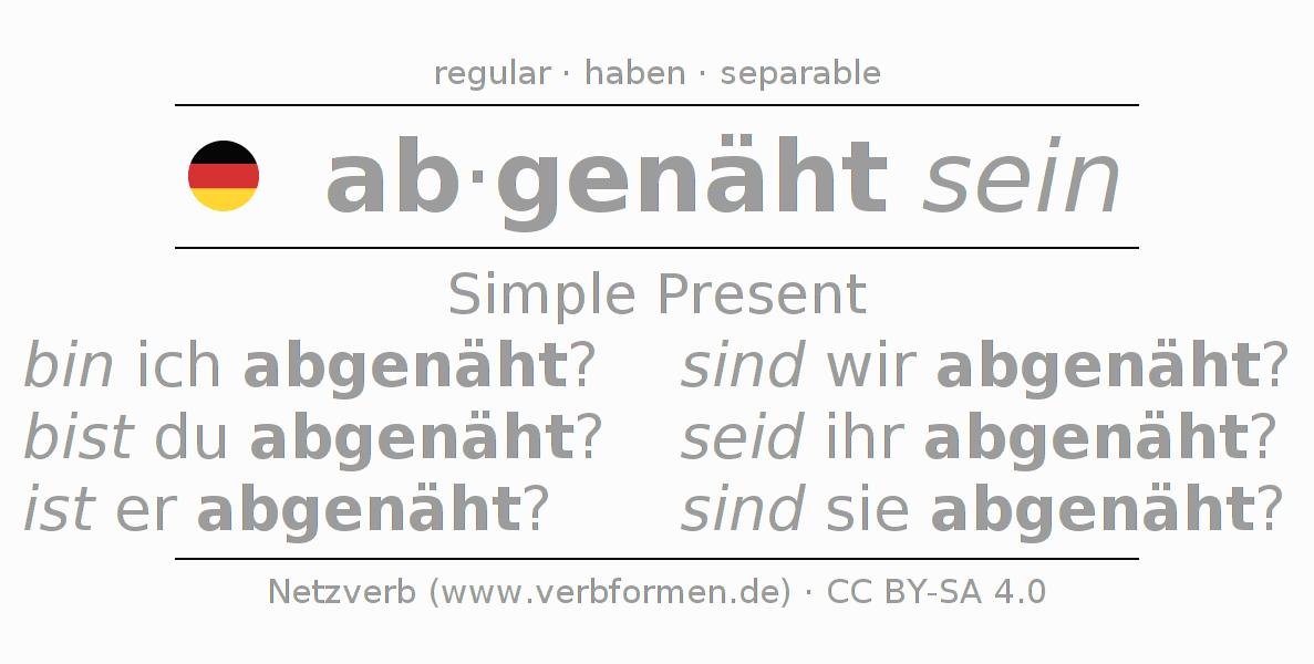 The verb abnähen fully conjugated in all persons and numbers in the Present Indicative