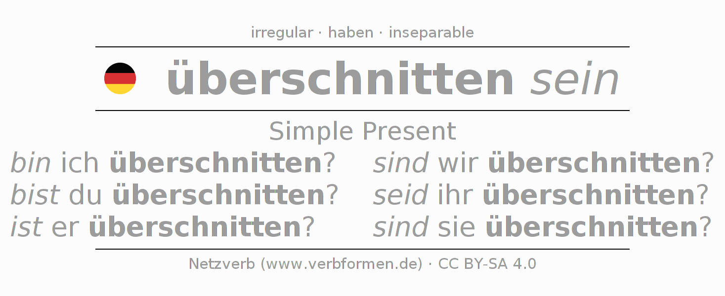 The verb überschneiden fully conjugated in all persons and numbers in the Present Indicative