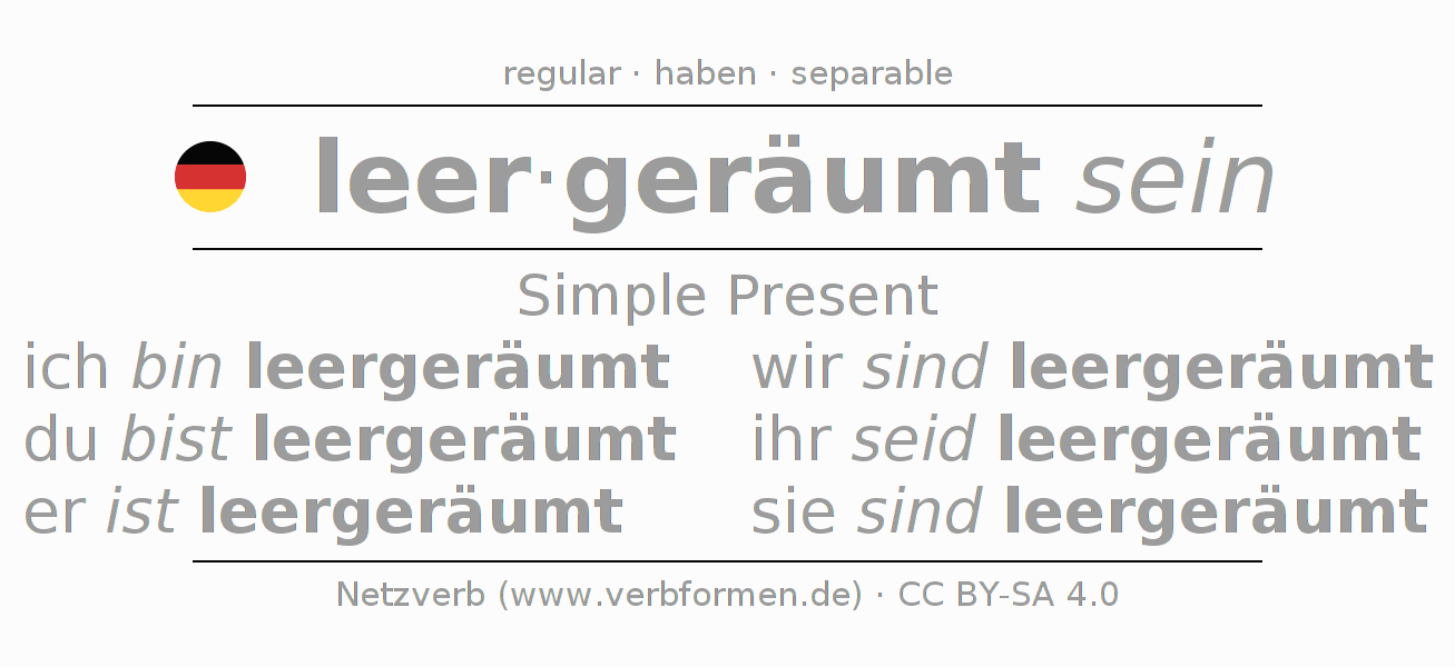 The verb leerräumen fully conjugated in all persons and numbers in the Present Indicative