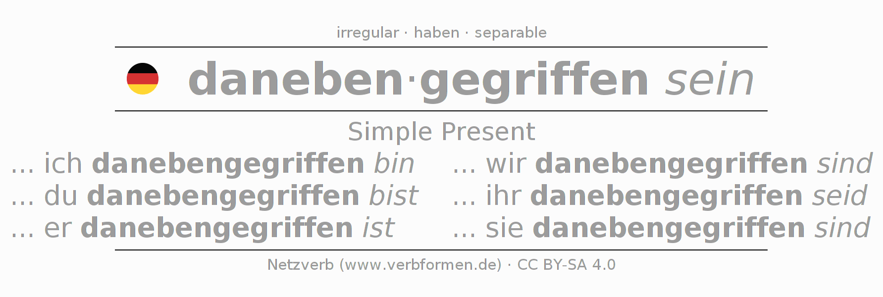 The verb danebengreifen fully conjugated in all persons and numbers in the Present Indicative