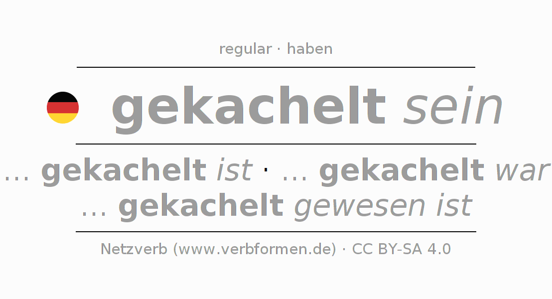 The conjugation of kacheln in Present Indicative Presence Statal Passive is ... ich gekachelt bin, ... du gekachelt bist, ... er gekachelt ist, ... wir gekachelt sind, ... ihr gekachelt seid, ... sie gekachelt sind.The conjugation corresponds to certain grammatical rules. Likewise the requirements for the conjugation of the simple verb forms of kacheln in Present. Comments ☆