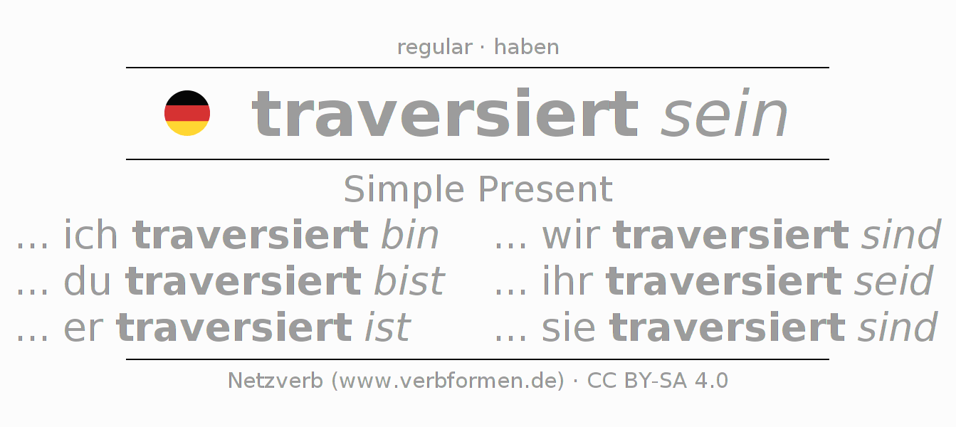 The verb traversieren (hat) fully conjugated in all persons and numbers in the Present Indicative
