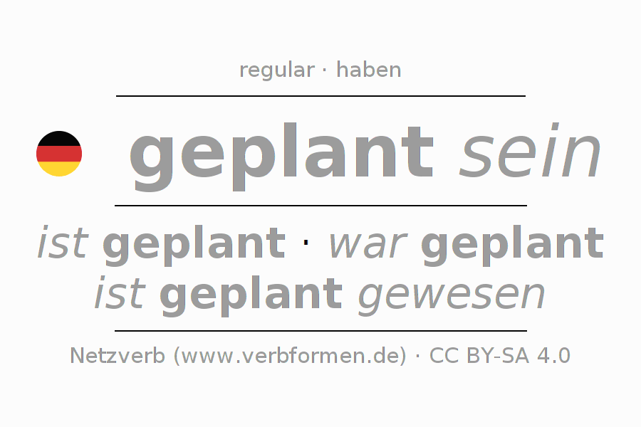 The conjugation of planen in Present Indicative Presence Statal Passive is ich bin geplant, du bist geplant, er ist geplant, wir sind geplant, ihr seid geplant, sie sind geplant.The conjugation corresponds to certain grammatical rules. Likewise the requirements for the conjugation of the simple verb forms of planen in Present. Comments ☆