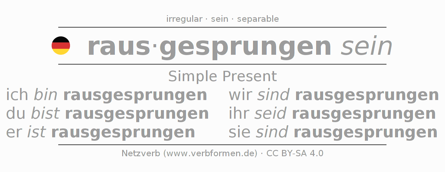 The verb rausspringen fully conjugated in all persons and numbers in the Present Indicative