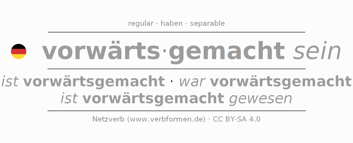 The verb vorwärtsmachen fully conjugated in all persons and numbers in the Present Indicative