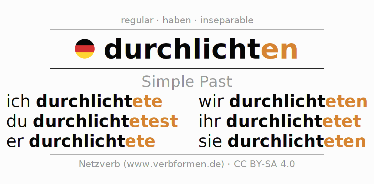 The verb durchlichten fully conjugated in all persons and numbers in the Imperfect Indicative