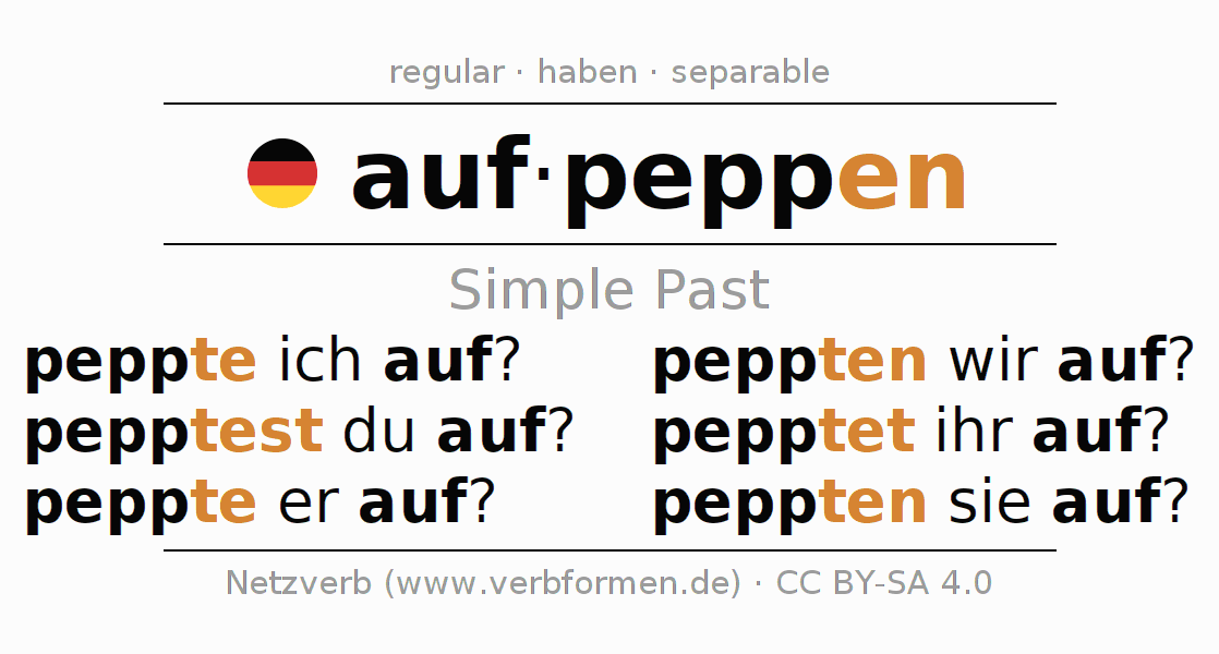 Imperfect of German verb aufpeppen 〈Interrogative〉