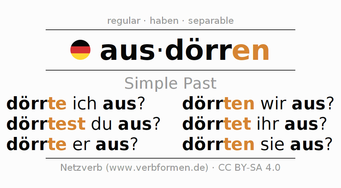 Imperfect of German verb ausdörren (hat) 〈Interrogative〉