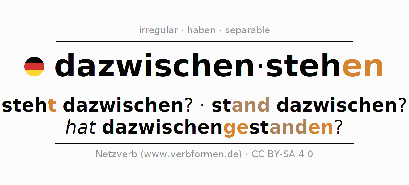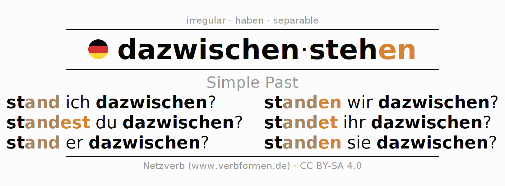 Imperfect of German verb dazwischenstehen (hat) 〈Interrogative〉