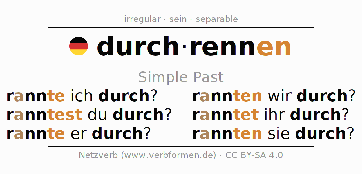 Imperfect of German verb durch-rennen (ist) 〈Interrogative〉
