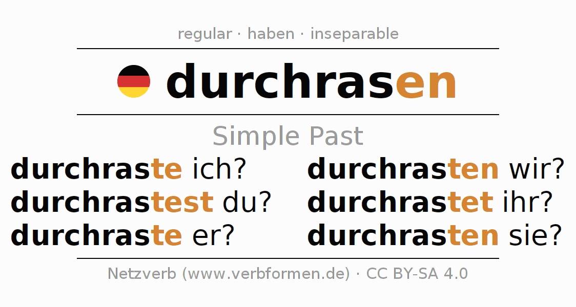 Imperfect of German verb durchrasen (hat) 〈Interrogative〉