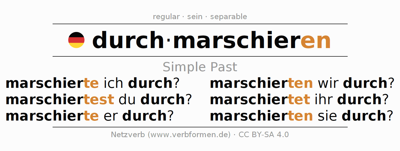 Imperfect of German verb durchmarschieren 〈Interrogative〉