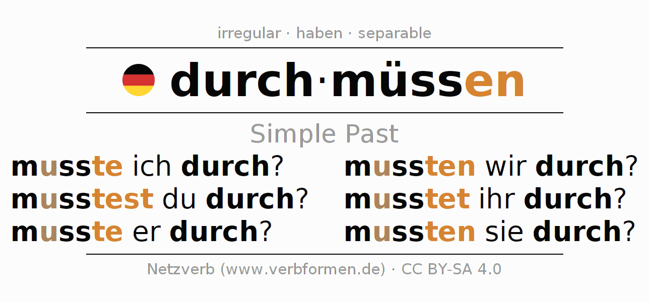 The verb durchmüssen fully conjugated in all persons and numbers in the Imperfect Indicative