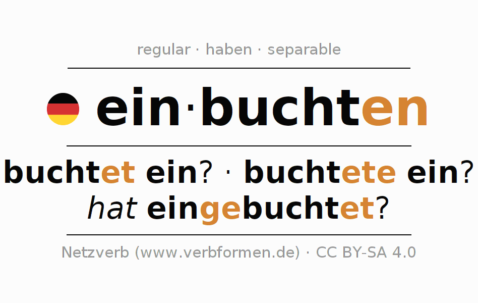 The conjugation of einbuchten in Imperfect Indicative Past Active is buchtete ich ein?, buchtetest du ein?, buchtete er ein?, buchteten wir ein?, buchtetet ihr ein?, buchteten sie ein?.The conjugation corresponds to certain grammatical rules. Likewise the requirements for the conjugation of the simple verb forms of einbuchten in Imperfect. Comments ☆
