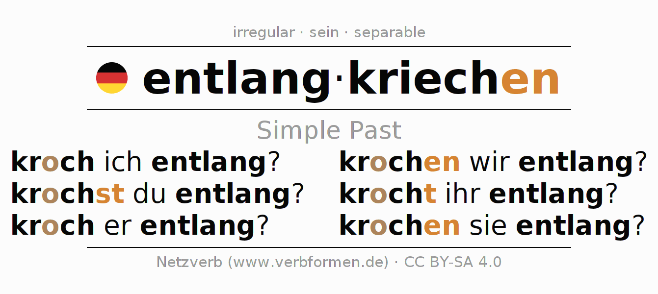Imperfect of German verb entlangkriechen 〈Interrogative〉