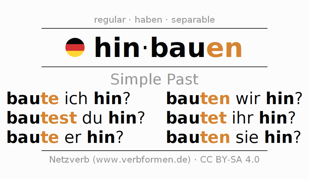 The verb hinbauen fully conjugated in all persons and numbers in the Imperfect Indicative