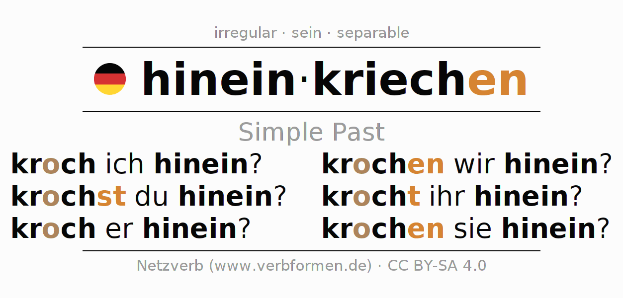 Verb forms in Imperfect of hineinkriechen