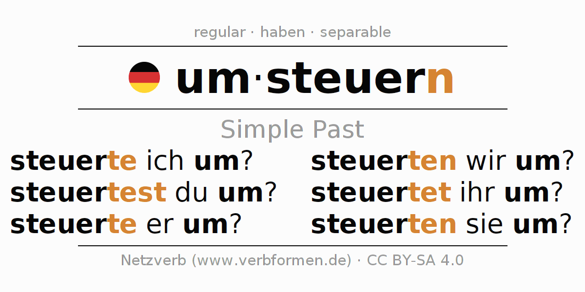 The verb umsteuern fully conjugated in all persons and numbers in the Imperfect Indicative