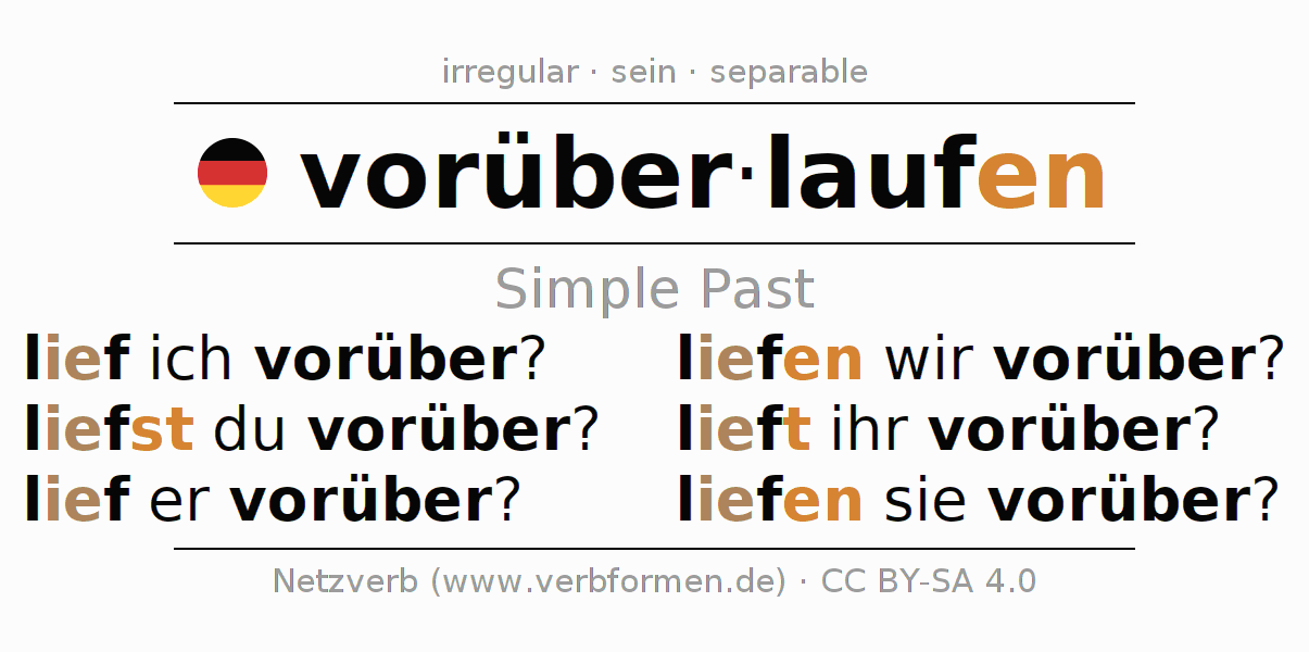 Imperfect of German verb vorüberlaufen 〈Interrogative〉