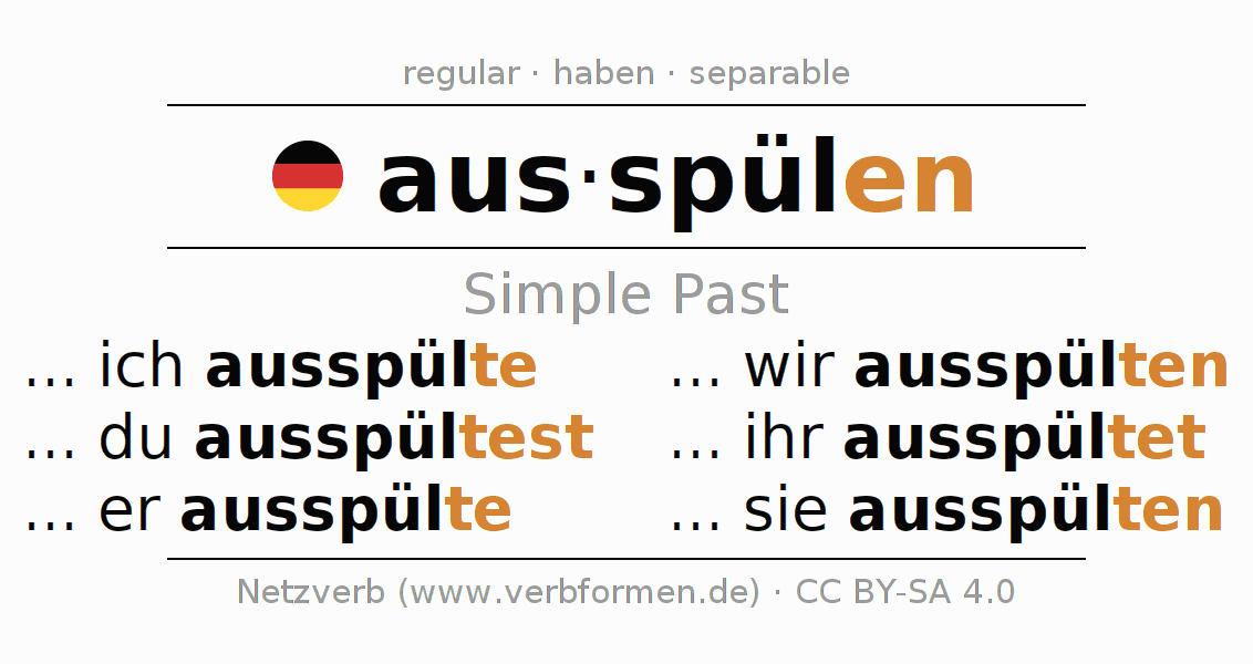 The verb ausspülen fully conjugated in all persons and numbers in the Imperfect Indicative