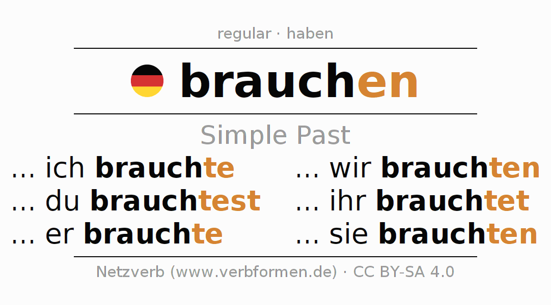 The verb brauchen fully conjugated in all persons and numbers in the Imperfect Indicative