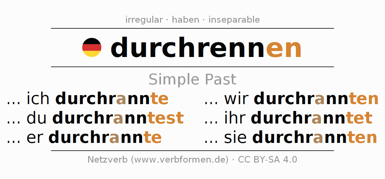 The verb durchrennen (hat) fully conjugated in all persons and numbers in the Imperfect Indicative