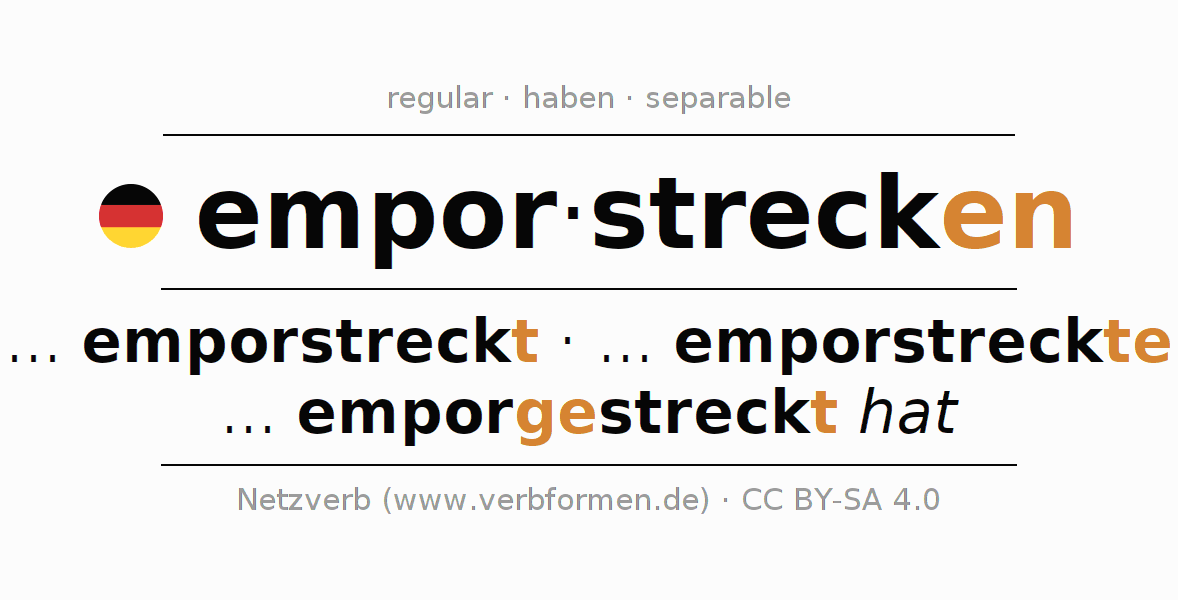 The verb emporstrecken fully conjugated in all persons and numbers in the Imperfect Indicative