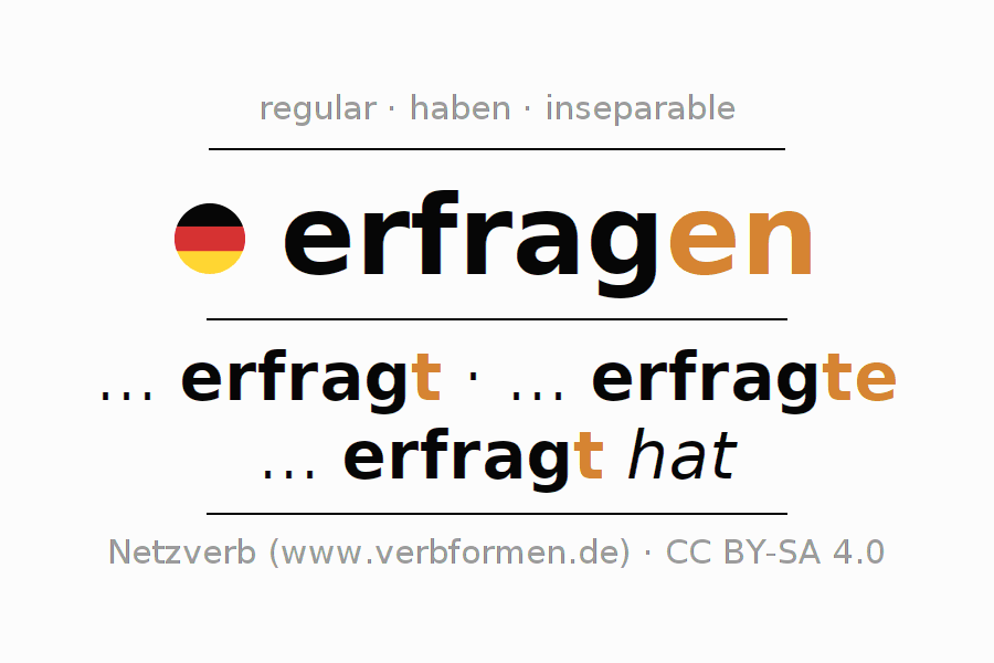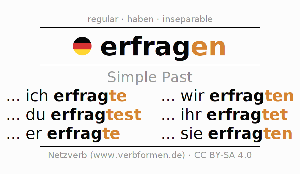 The verb erfragen (regelm) fully conjugated in all persons and numbers in the Imperfect Indicative