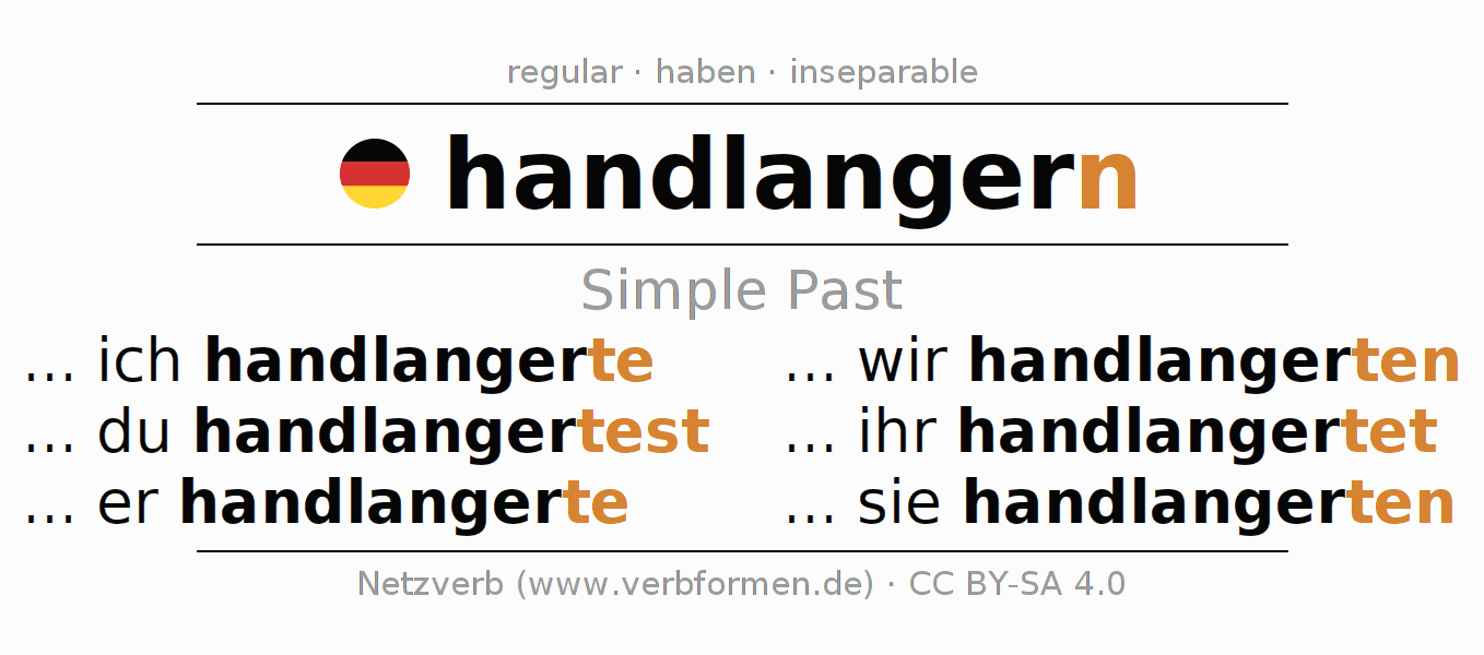 The verb handlangern fully conjugated in all persons and numbers in the Imperfect Indicative