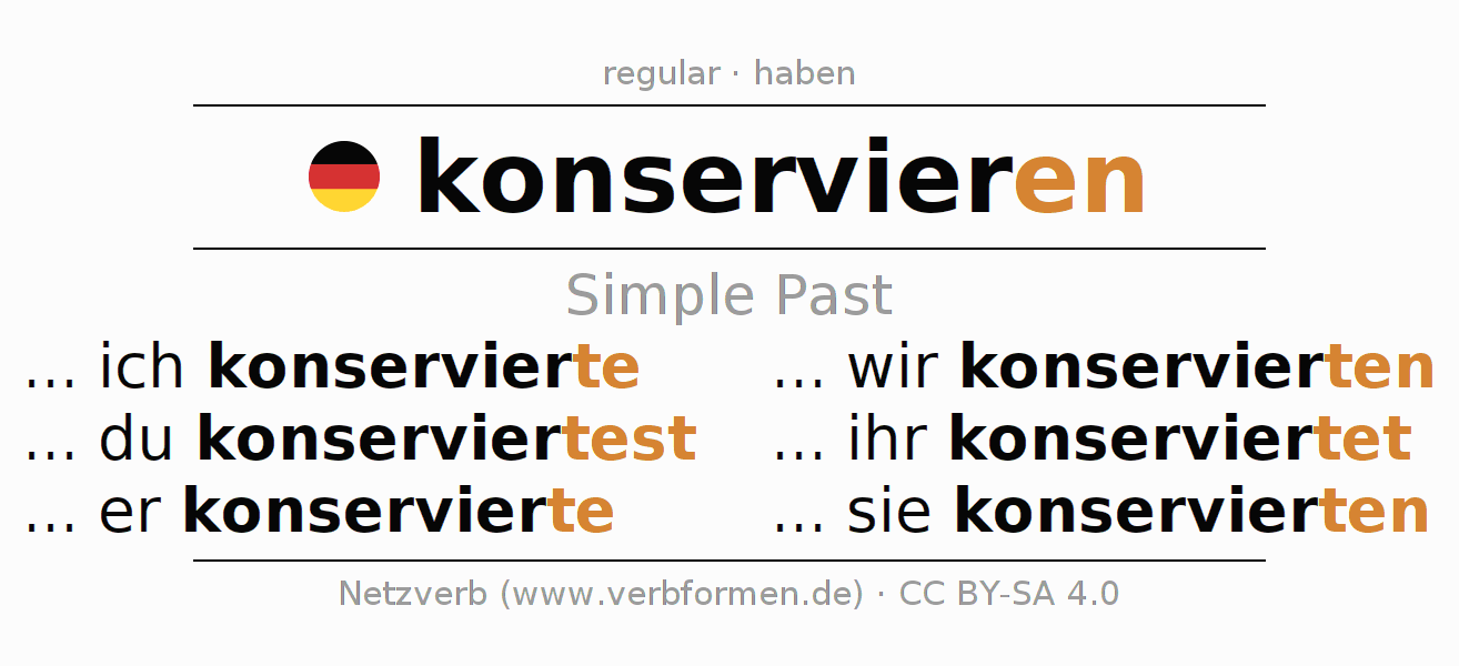 The verb konservieren fully conjugated in all persons and numbers in the Imperfect Indicative