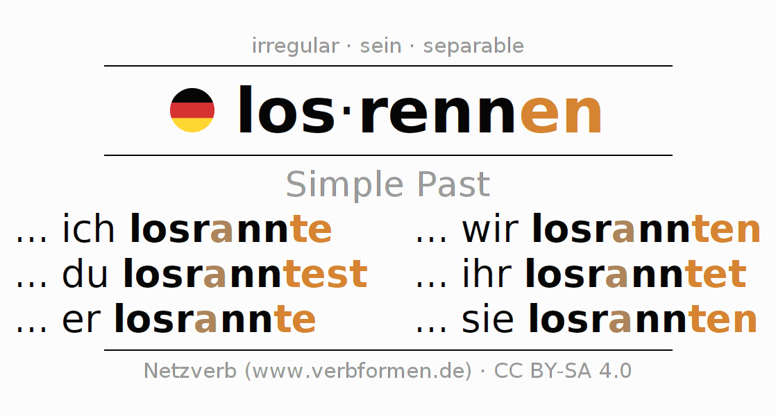 The verb losrennen fully conjugated in all persons and numbers in the Imperfect Indicative
