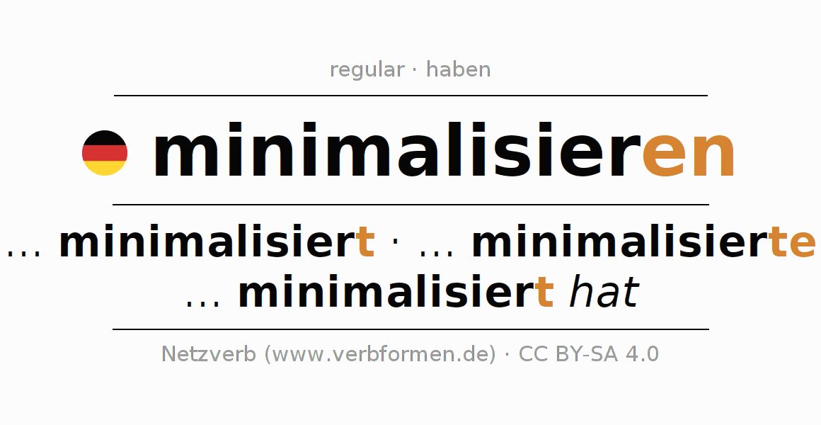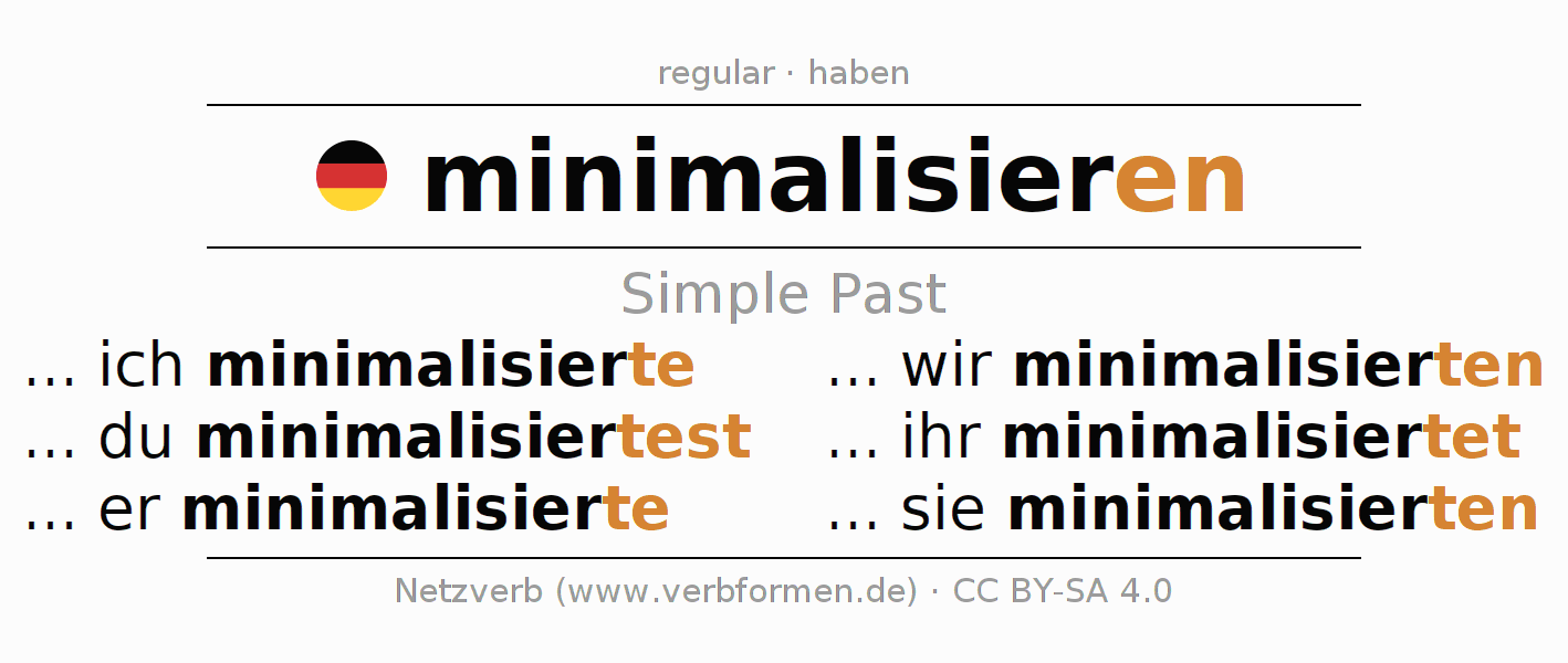 The verb minimalisieren fully conjugated in all persons and numbers in the Imperfect Indicative