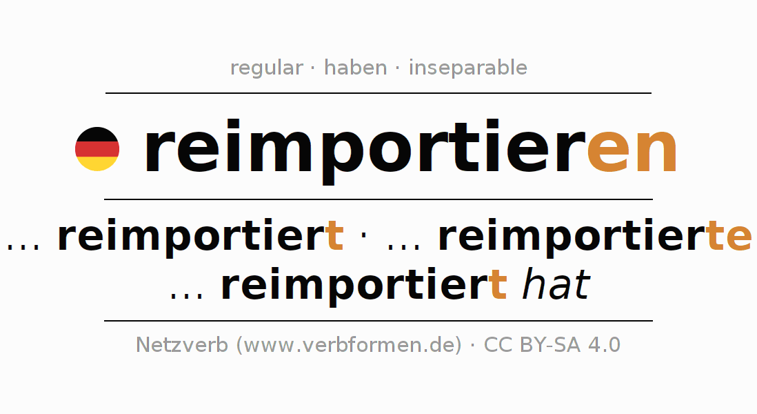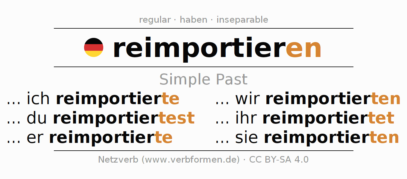 The verb reimportieren fully conjugated in all persons and numbers in the Imperfect Indicative