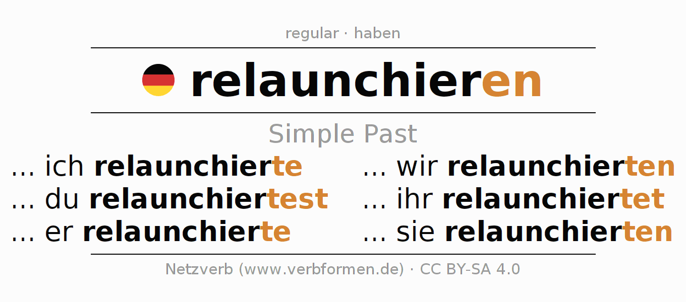 The verb relaunchieren fully conjugated in all persons and numbers in the Imperfect Indicative