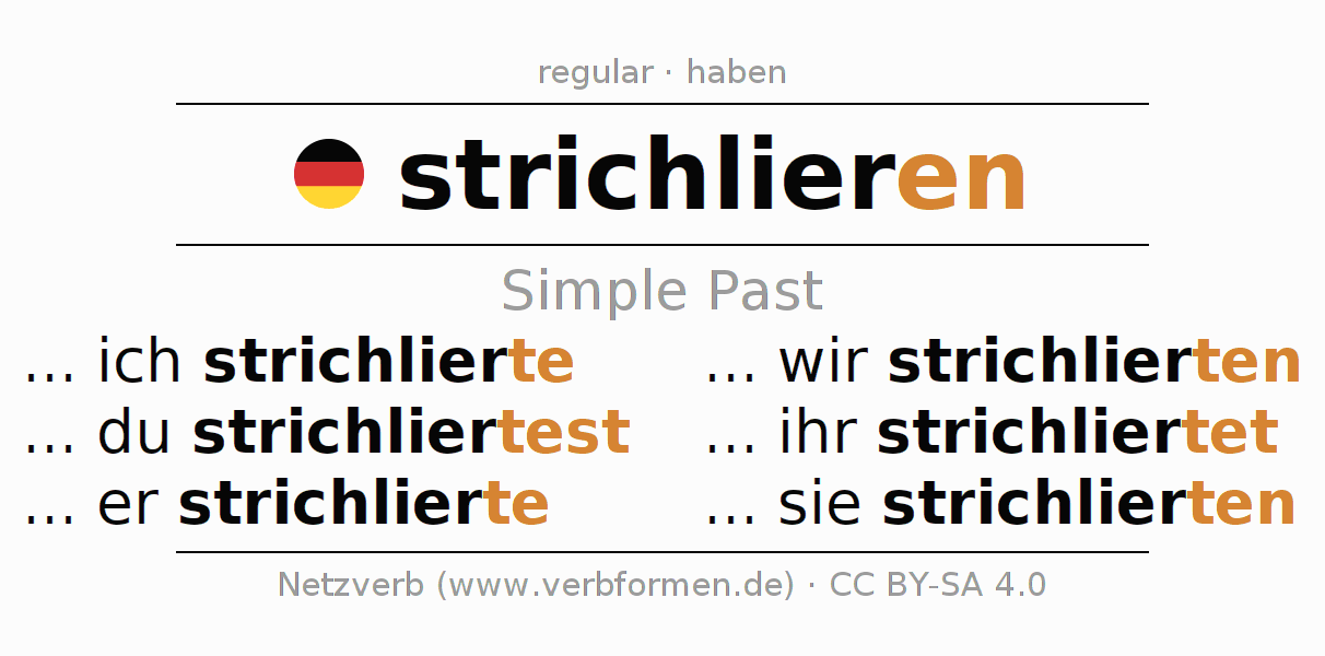 The verb strichlieren fully conjugated in all persons and numbers in the Imperfect Indicative