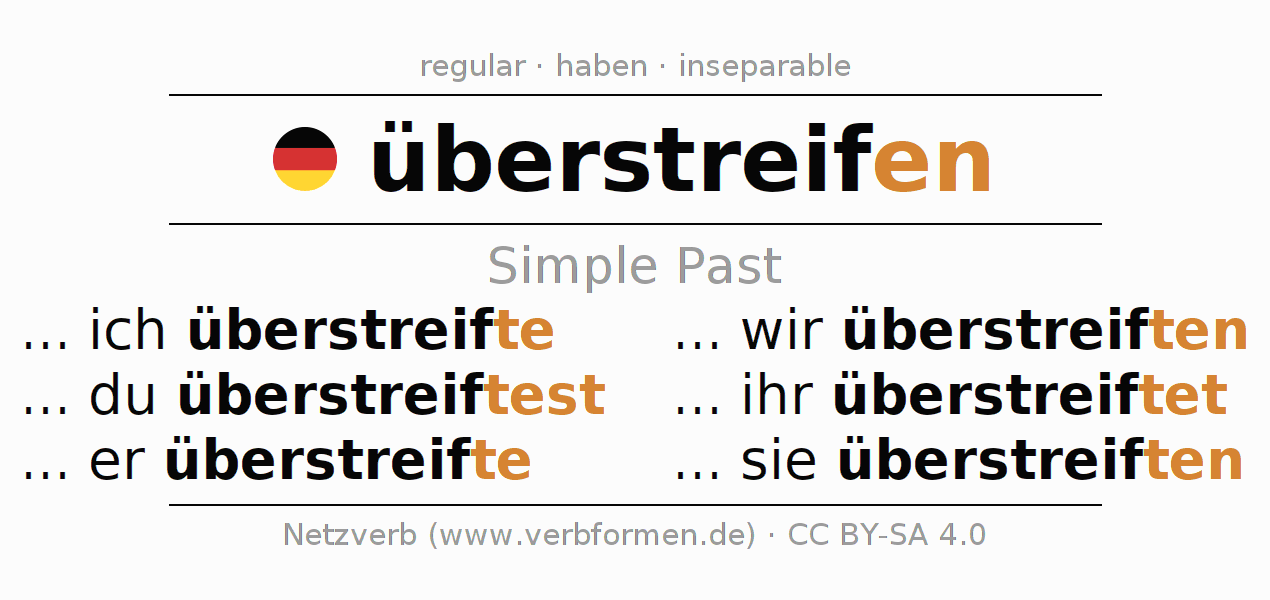 The verb überstreifen fully conjugated in all persons and numbers in the Imperfect Indicative