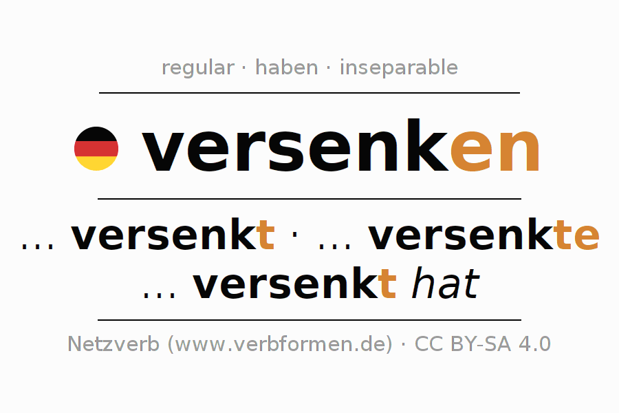 The verb versenken fully conjugated in all persons and numbers in the Imperfect Indicative