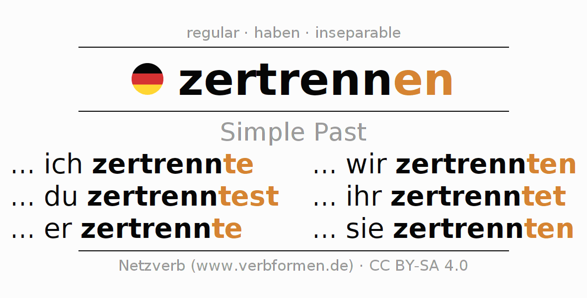The verb zertrennen fully conjugated in all persons and numbers in the Imperfect Indicative