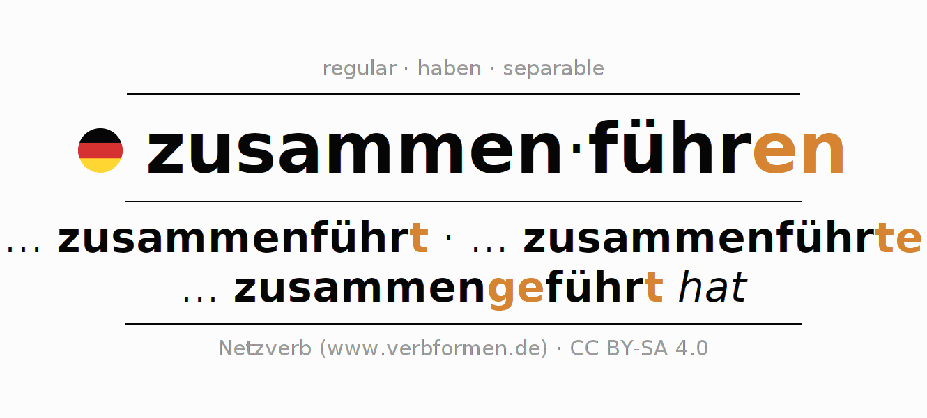 The verb zusammenführen fully conjugated in all persons and numbers in the Imperfect Indicative