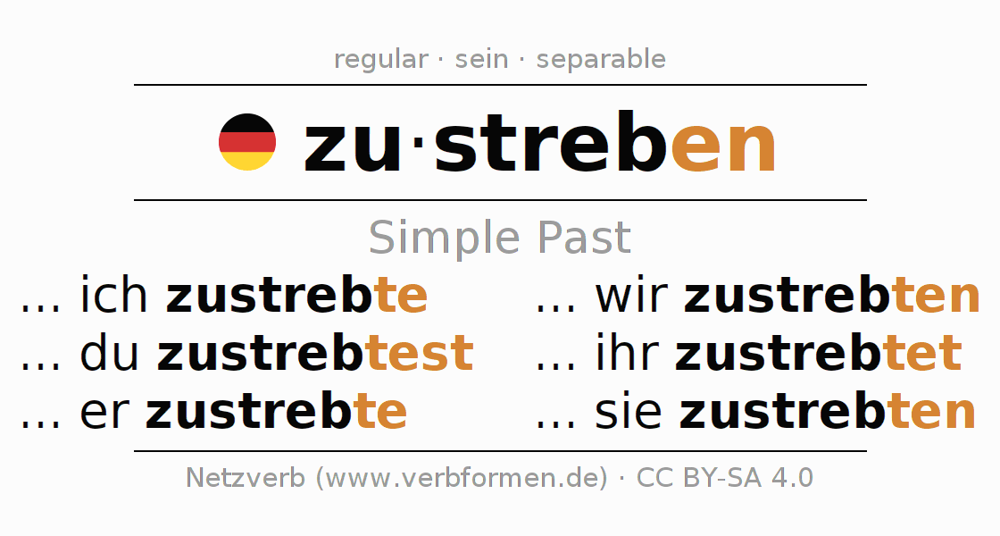 The verb zustreben fully conjugated in all persons and numbers in the Imperfect Indicative