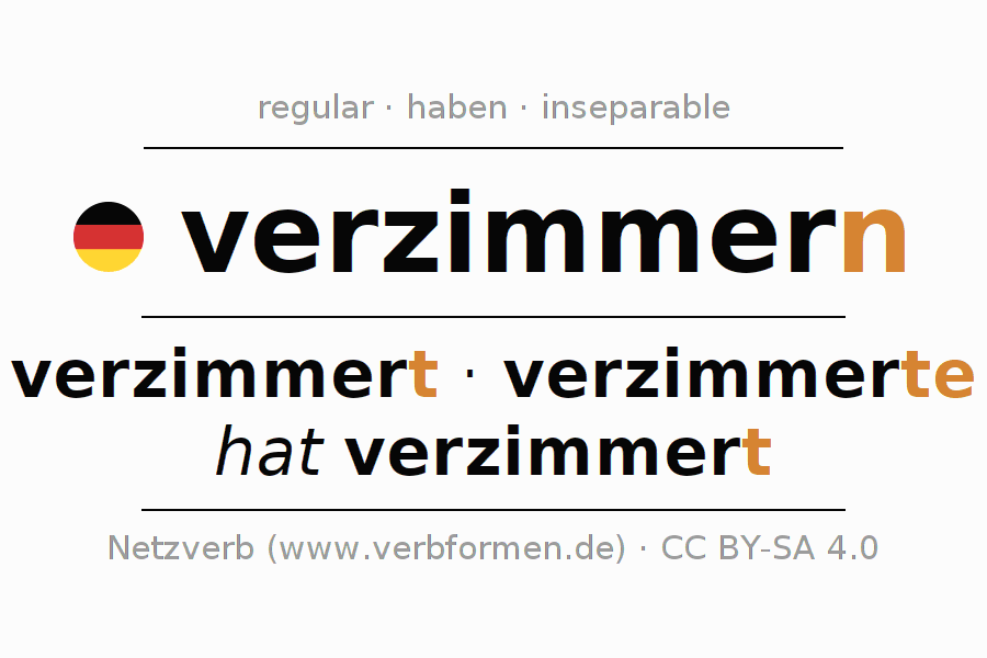 The verb verzimmern fully conjugated in all persons and numbers in the Imperfect Indicative
