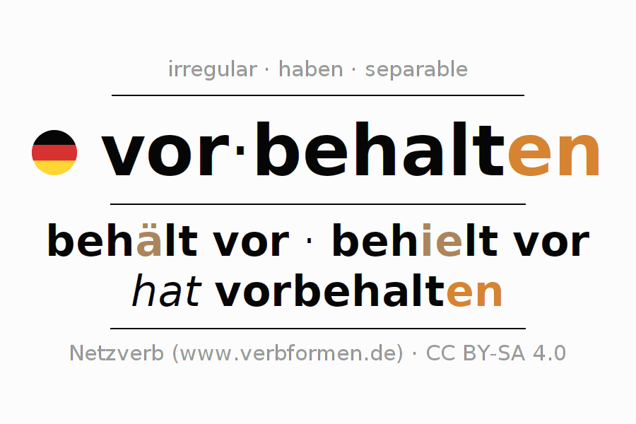The verb vorbehalten fully conjugated in all persons and numbers in the Imperfect Indicative