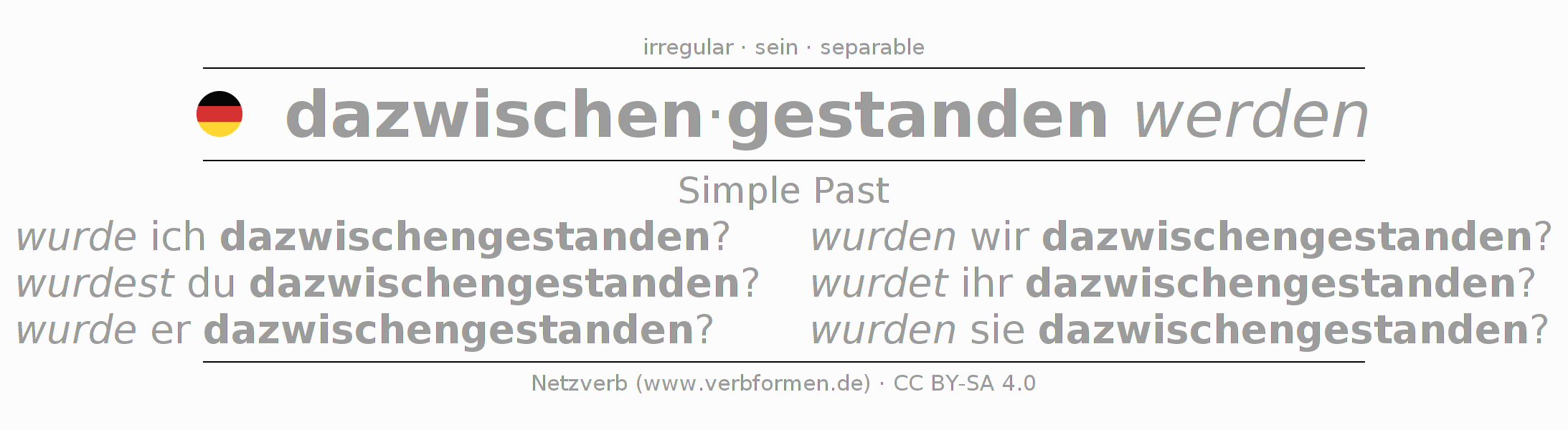 Imperfect of German verb dazwischenstehen (ist) 〈Passive〉 〈Interrogative〉