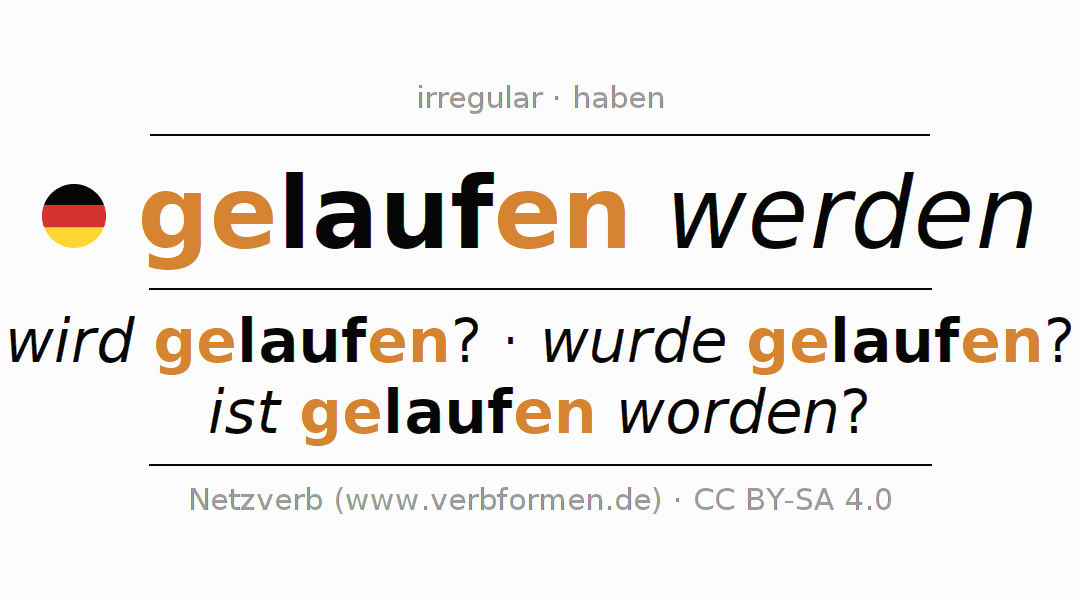 The conjugation of laufen in Imperfect Indicative Past Passive is wurde ich gelaufen?, wurdest du gelaufen?, wurde er gelaufen?, wurden wir gelaufen?, wurdet ihr gelaufen?, wurden sie gelaufen?.The conjugation corresponds to certain grammatical rules. Likewise the requirements for the conjugation of the simple verb forms of laufen in Imperfect. 1Comment ☆5.0