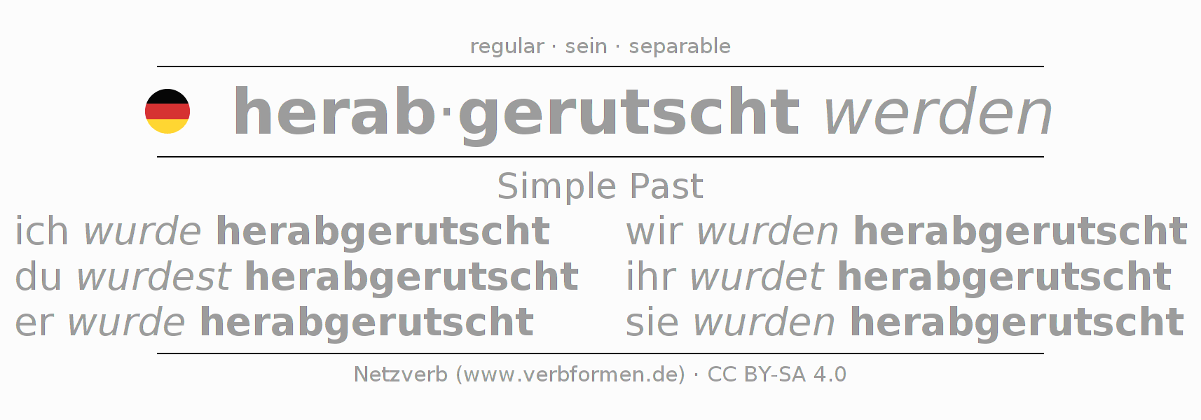 The verb herabrutschen fully conjugated in all persons and numbers in the Imperfect Indicative