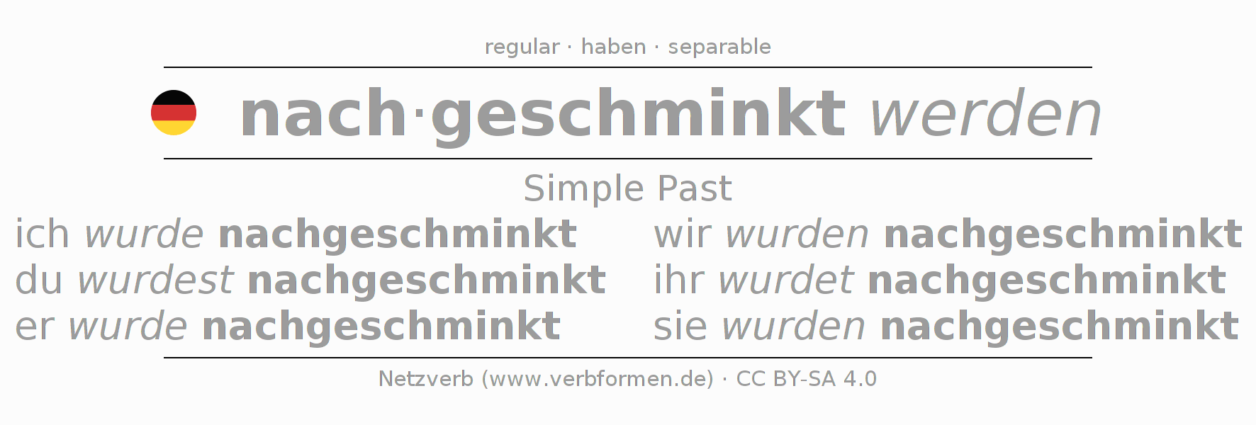 Imperfect of German verb nachschminken 〈Passive〉