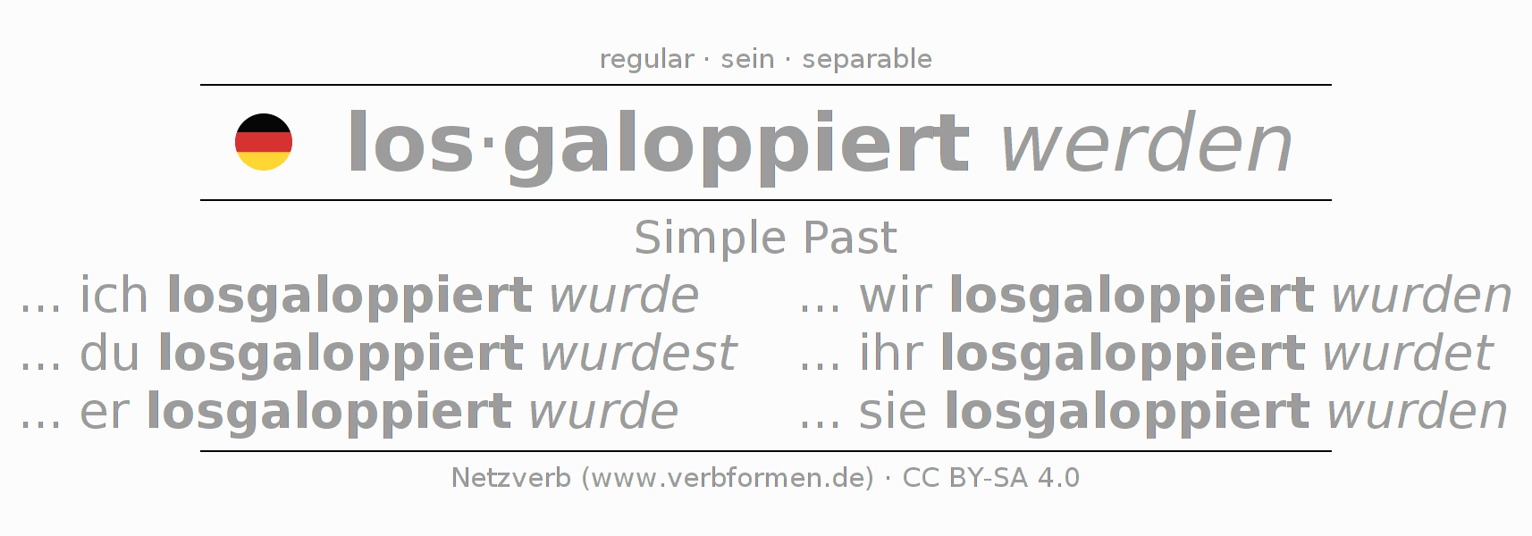 The verb losgaloppieren fully conjugated in all persons and numbers in the Imperfect Indicative