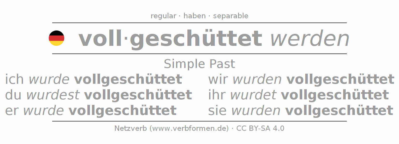 - ich wurde vollgeschüttet (1st PersonSingular)